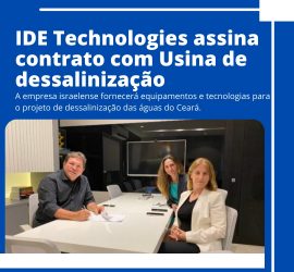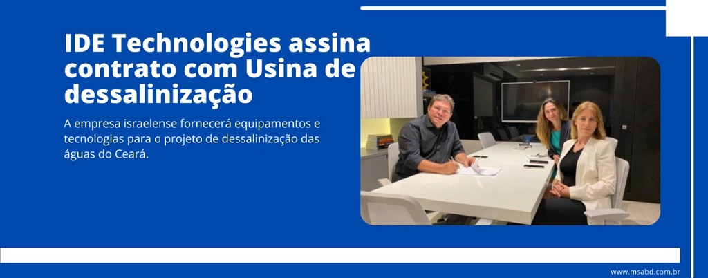 A MSA Tecnologias Israelenses representante da IDE no Brasil tem a honra de comunicar que nesta semana o Consórcio Águas de Fortaleza e IDE Water Technologies assinaram o Contrato de fornecimento ...